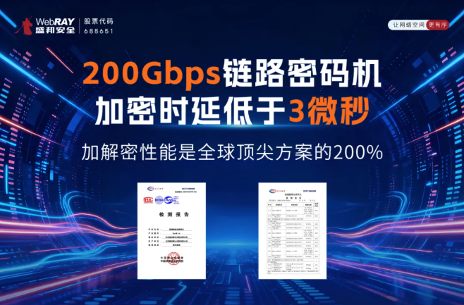 盛邦安全200G高速链路加密网关经过中国信通院泰尔实验室检测,测试数据揭示的不仅是一组亮眼数字,更是全球高速通信加密领域的格局重塑。