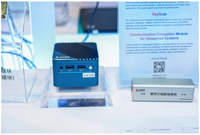在国际市场,技术实力是企业获得信任的“入场券”。本届香港国际创科展以“创新·智动·起飞”为主题,作为网络安全领域的代表性科创企业,盛邦安全重点展示了四大核心产品:一体化漏洞评估系统(RayScan)、无人通信加密模块、全球网络空间资产测绘平台(DayDayMap)及微型IP链路加密机。这些产品覆盖漏洞管理、通信安全、资产测绘等关键领域,体现了公司在网络安全领域深厚的技术积累。
