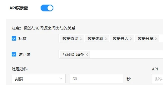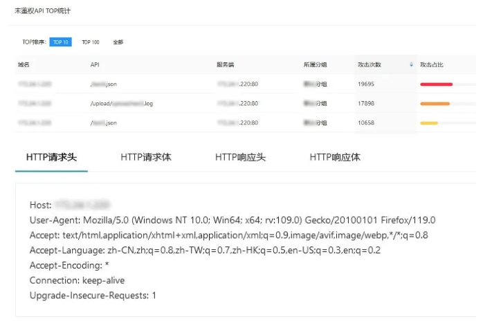 (2)做好接口异常行为检测。以RayAPI为例,通过对接口访问频次、数据调用规模的趋势分析,识别可能存在的接口攻击行为,并配合安全基线要求设定访问控制策略。