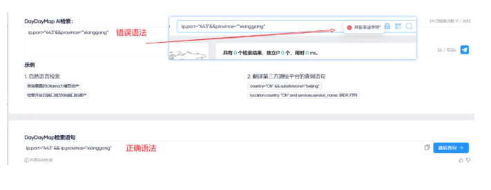 在网络攻防实战中,安全人员通常需在多个测绘平台间交叉验证数据,可不同平台间的语法差异,导致查询语句无法复用,浪费了时间和精力。DayDayMap 凭借跨平台异构语法兼容引擎,轻松攻克这一难题。他支持对主流测绘平台语句的转换,能将其他平台的语句快速转换为自身语法体系,从而节省了大量的学习成本。