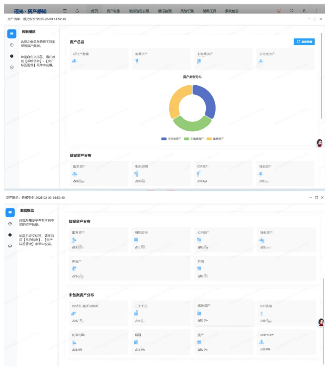 基于内网RayGate 网络资产安全治理平台的探测引擎+互联网DayDayMap动态地图+瑶光攻击面AI分析平台,自动识别未备案资产,生成可视化资产台账,实现资产“零盲区”管理。