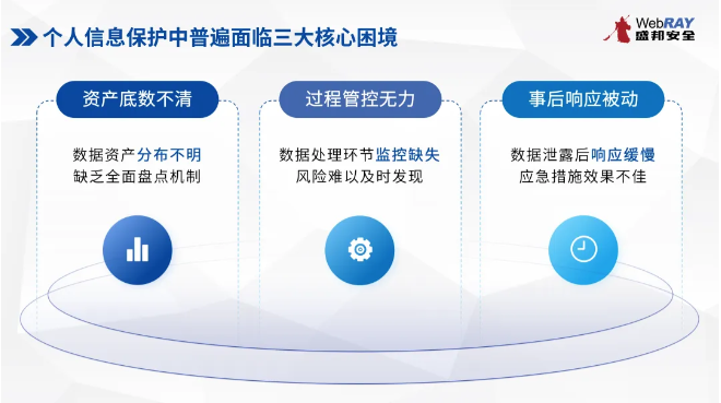 一是资产底数不清,个人信息类型、存储位置、流转路径难以全面梳理,超范围收集、权限不合规等隐患无法从源头排查;
