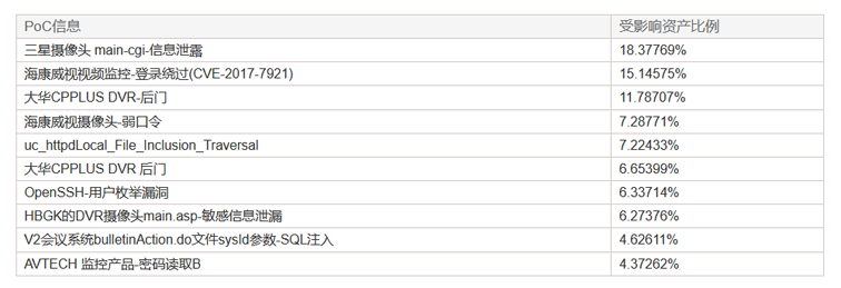 中国境内网络摄像头资产中新漏洞分布情况如下: