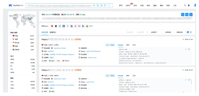 通过安全服务+DayDayMap地理信息系统,实现属地OpenClaw资产分布的可视化查询与动态更新,助力监管部门“一图知全局”。